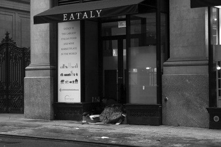 La strada metafora anche di chi è rimasto senza un tetto e senza un lavoro, di chi è costretto ad andarsene dal proprio paese o di chi semplicemente si è solo stancato di far parte di un meccanismo spietato che non perdona coloro che rimangono indietro. Una strada o una piazza milanese d'inverno potrebbero anche essere vissute con la speranza di riuscire, nonostante tutte le difficoltà, a sopravvivere al gelo metropolitano, almeno un'altra volta.