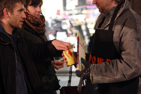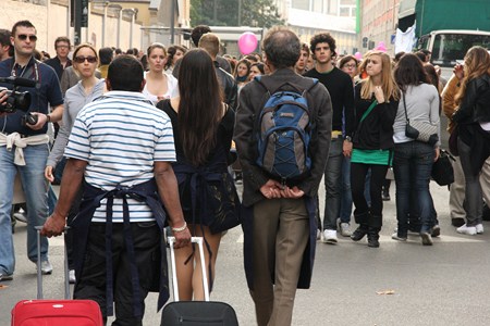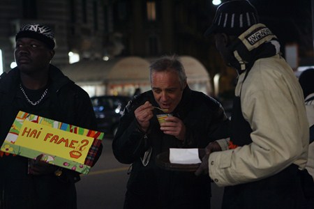 Allo stesso modo, la performance Beggar"s Food, isola il fenomeno sociale dell"escluso, del povero, lo rende azione di strada, situazione nella quale imbattersi, provocando però un ribaltamento delle regole alle quali giocare. Beggar"s Food, infatti, inverte la domanda assillante del povero plasmandola fino a diventare un"offerta: " Ho fame" diventa " Hai fame?". Grazie alle competenze e all"esperienza di Massimo Bernardi e dello staff di Dissapore, il povero entra nel mondo del food, diventa autore di un"offerta invece che vittima della propria domanda. Un"offerta che si realizza, inoltre, come offerta economica, dato che il pubblico potrà corrispondere del denaro. Libera offerta o ennesima elemosina, simbolo che concretizza, ancora una volta, nello " spazio" della performance, la relazione cibo-denaro alla base del modello economico liberista.