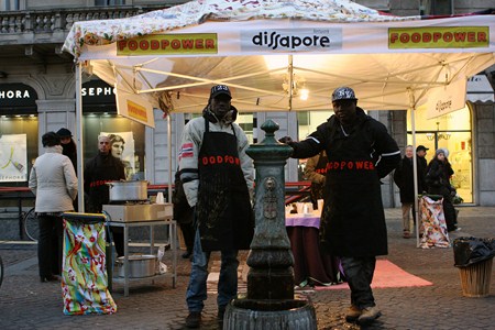 Se la gente che abita la strada aumenta, se dà fastidio, se toglie decoro alla città, perché non provare ad inventare un nuovo modo di elemosinare, uno che sia in grado paradossalmente di creare profitto? Secondo la cinica filosofia del profitto, ogni gesto dell'essere umano deve essere finalizzato al tentativo di creazione di un affare economico, perchè non è forse l'economia il più grande pilastro della società? In fondo Shockeconomy di N. Klein diceva anche questo. Se quindi viviamo in una società schizofrenica in cui la multinazionale tiranneggia e solo chi ha il senso del business può vincere, in cui la lotta al cambiamento a nulla serve se non a distrarre le menti e a soffocare il comune senso di colpa, non potrebbe la contestazione, anche online, diventare una sorta di terapia di massa? Siamo tutti appagati e convinti di aver ingannato un sistema che fa muovere miliardi per il solo fatto che consumiamo elettricità per collegarci in rete. Evitando però digressioni prolisse circa l'inganno e concentrando invece l'attenzione sul tema del cibo prendiamo ad esempio un "soul-coach", cioè "un addestratore dell'anima", come Dan Lerner, che con rigore condito di carisma inizia al rito della cucina, o meglio dello star in cucina, uno dei tanto esclusi dalla società. D'altronde il mendicante non mostra sempre un cartello con scritto "HO FAME" FOODPOWER ha capovolto la richiesta in offerta: "HAI FAME?" A volte avere fame non significa voler mangiare ma voler essere sfamato da altri con premura e attenzione .