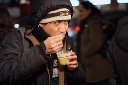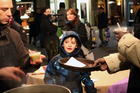 Gli chef di Beggar´s Food offriranno al pubblico che parteciperà alla performance un piatto di zuppa, piatto legato alla tradizione della cucina povera. Esempio di social diet, la zuppa è in grado di sedurre il gusto, dare conforto e rifocillare dal freddo invernale in modo genuino ed economico.